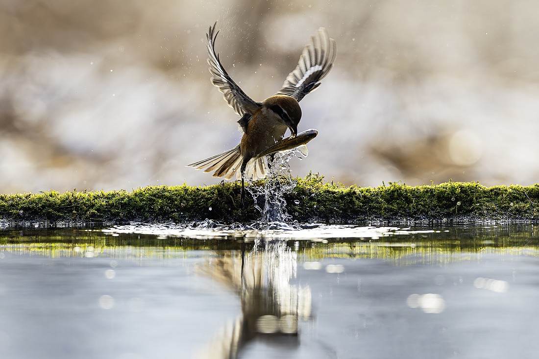 물고기 사냥을 성공한 때까치....