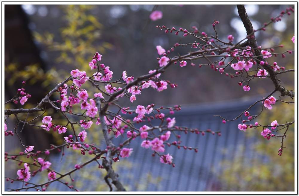 홍매화와 직박구리가 멋진 조화를 이루네요.